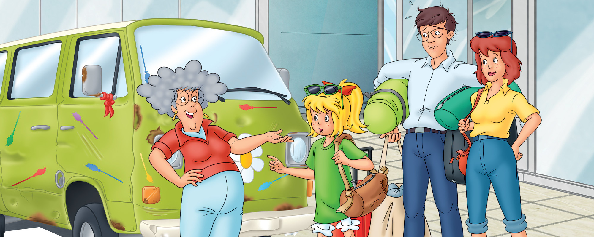 Oma Grete legt aus Versehen den Neustädter Flughafen lahm. Weil der Urlaubsflug von Bibi, Bernhard und Barbara nun ausfällt, fährt sie die drei spontan mit dem alten Campingbus einer Freundin in den Süden. Auf der Fahrt ans Meer treffen sie eine Astrologin, ein kleines Hängebauchschwein, einen netten Polizisten und haben auch noch eine Autopanne.